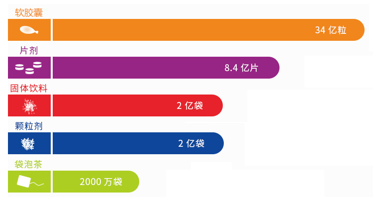 現有1500多種配方,七大劑型片劑、粉劑、軟膠囊、顆粒、泡騰片、袋泡茶、飲品等系列;工廠引進進口設備60余臺,年產量可達1000萬噸以上。